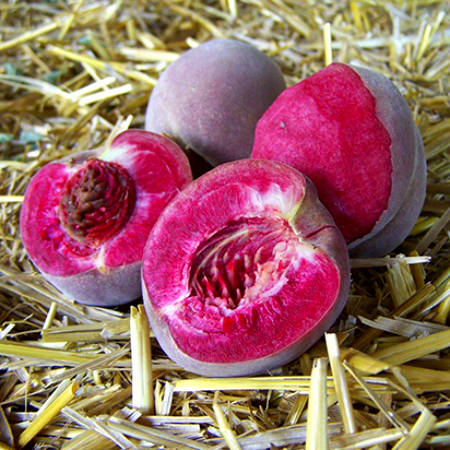 Персик красномʼясистий “Клаудініні” – це ексклюзивний сорт американської селекції Флойд Зайгер. Відрізняється незвичайними плодами глибокого бордового забарвлення з червоною м’якоттю. Сорт преміальний, пізній, урожай приносить в останні тижні вересня. Дерево добре переносить сильні морози (-30°С ) і стійке до різноманітних хвороб.