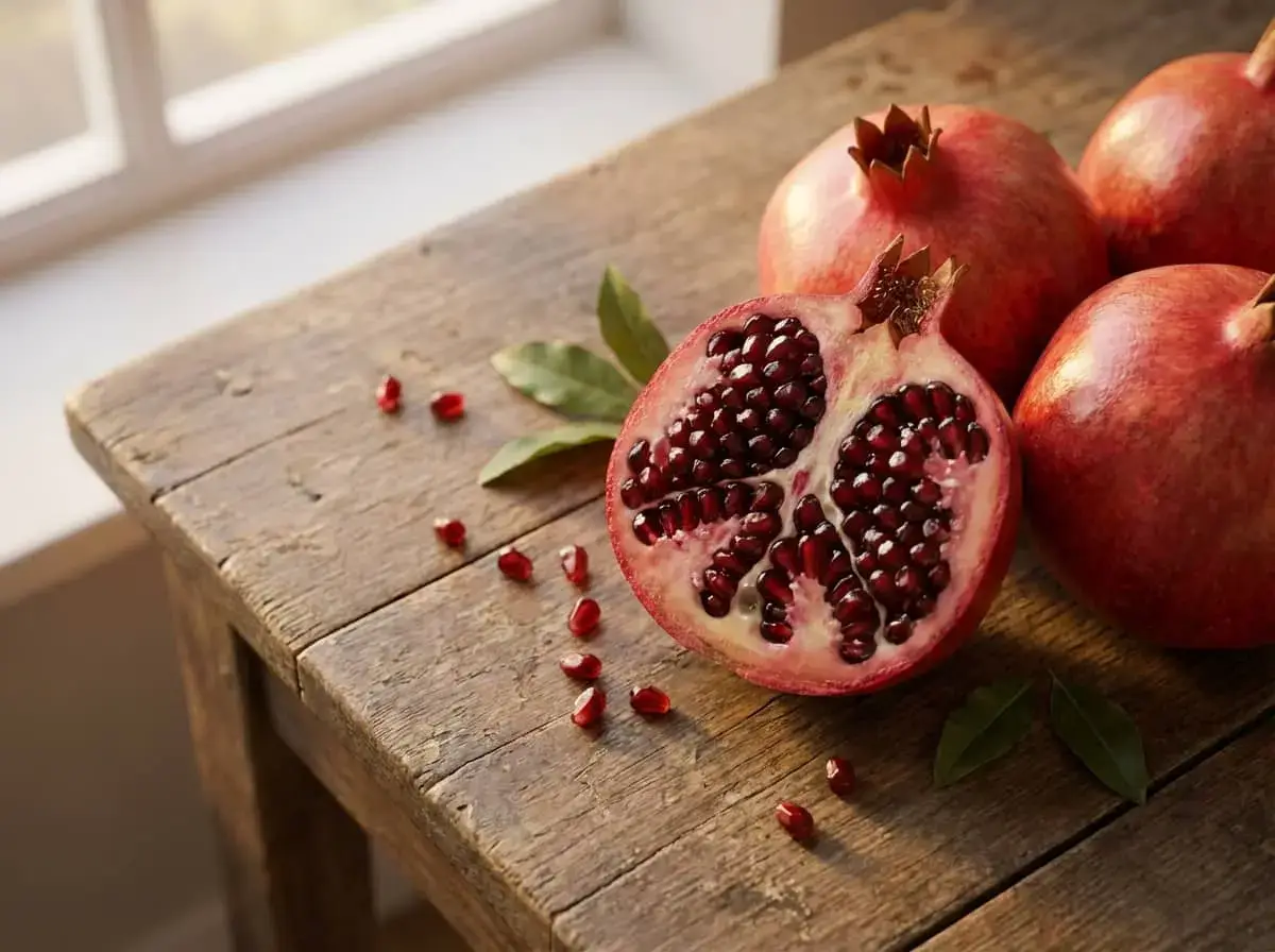 Повністю їстівний, соковитий гранат з насиченим кисло-солодким смаком і темно-рубіновими зернами. Розміром плоди трохи менші за магазинні, але смак — справжній гранатовий.