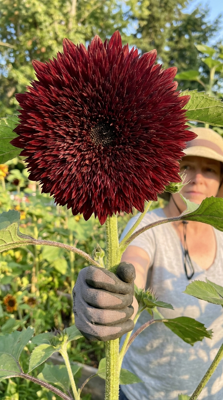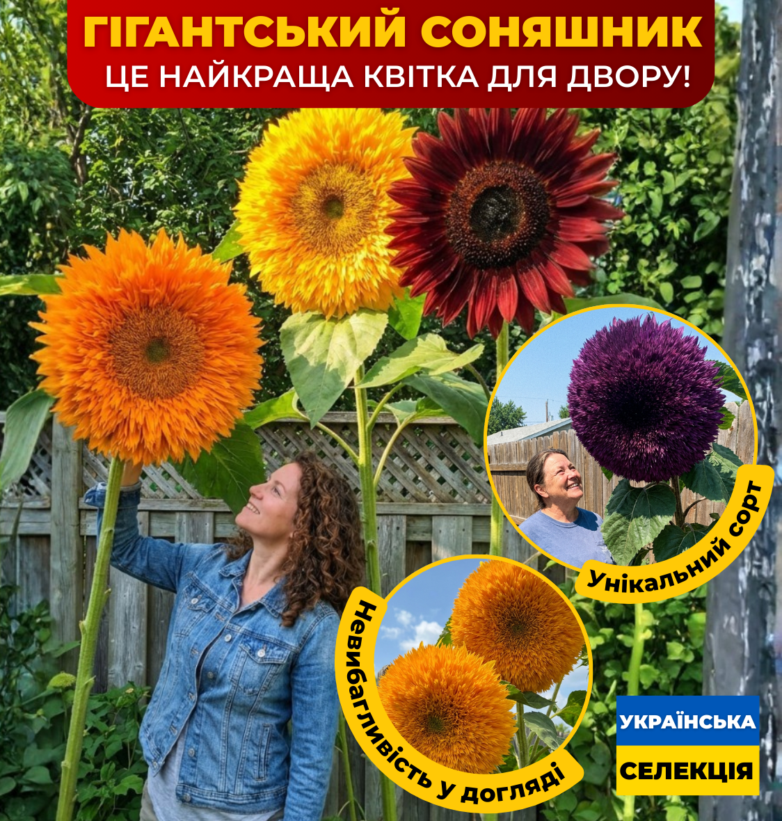 Яскравий помаранчевий відтінок з неймовірно пухнастими багатошаровими пелюстками. Голова квітки виростає до 40 см — справжній велетень який зупиняє перехожих.